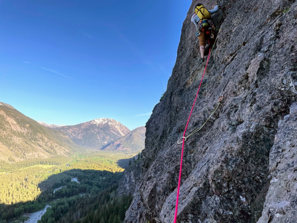 Cory was nice enough to let me lead every pitch of the route – what a treat! The climbing tends to be quite friendly, aside from a blind step left on the fourth pitch, which I felt was the clear crux of the route. Given the crowds that this route draws, consider adjusting your expectations and desires away from climbing fast and getting an Instagram-worthy time. Chill out, eat snacks, and chat with the people you are sharing the route with!