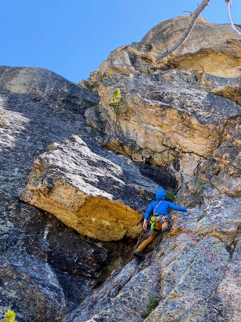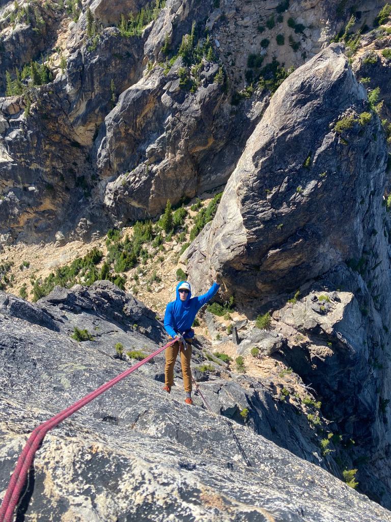 The fourth pitch started with a massive leftward traverse before climbing some more shallow, flared cracks to reach a final belay stance. From here, we scrambled to the summit, rappelled the North Face, and power hiked back to the car. Unfortunately, there are no restaurants open in Winthrop after 9pm…